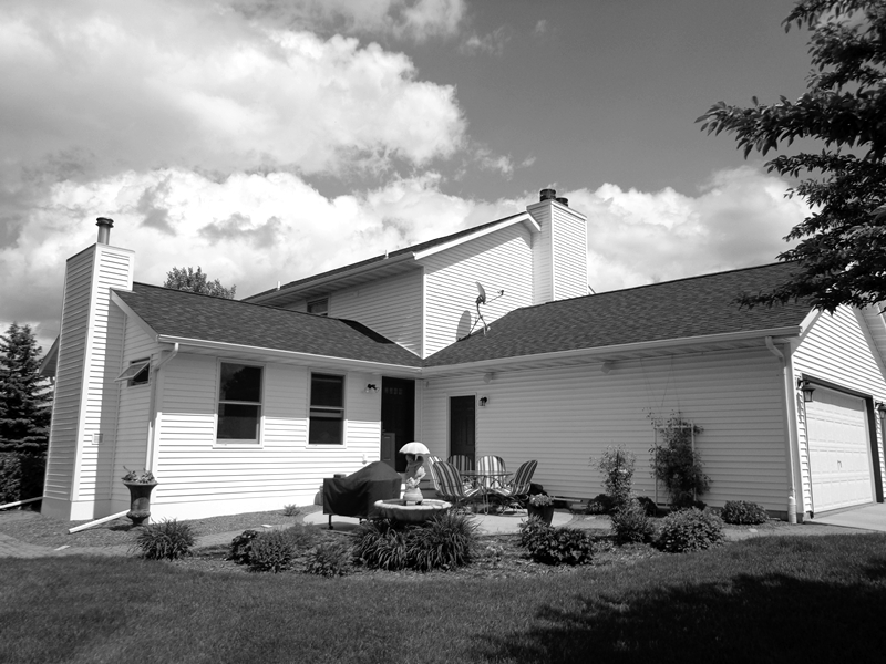 View from behind the fireplace. Northwind Switchgrass, Boxwood and Burningbush will fill the space as the garden matures.