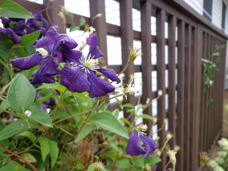Trelliswork is installed between existing deck posts to match the rest of the graden.