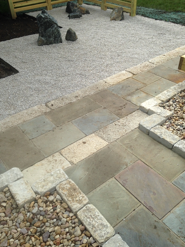 The accent of the Limestone step compliments the Bluestone paving nicely.
